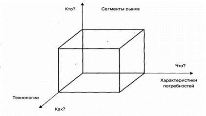 Важный шаг в определении бизнеса и в целом в матричном подходе сделан Д. Абелем (Abell), который предложил определять область бизнеса в трех измерениях (рис. 5.5):