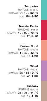 Справочники содержат цвета PANTONE Textile с его 6-значным обозначением и названием цвета на английском языке в разном формате.