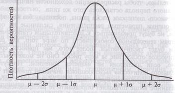 и на графике представляет собой симметричную колоколообразную кривую Гаусса, имеющую максимум в точке, соответствующей значению