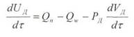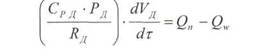 где UД — внутренняя энергия слоя дыма; Qп — тепловой поток, подводимый из конвективной колонки или непосредственно из очага горения, кг/с; Qw -тепловой поток, отводимый в ограждающие конструкции, Вт; РД -оптическое давление газов в задымленном слое, Па; VД - объем задымленного слоя, м3.