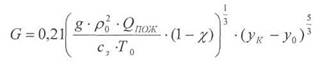где g - ускорение свободного падения, χ - доля, приходящаяся на поступающую в ограждения теплоту от выделившейся в очаге горения.