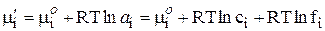 где сi – концентрация i -го иона в идеальном растворе, то для реального раствора будем иметь: