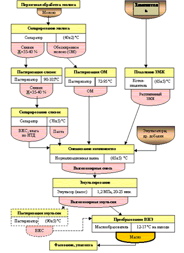Важнейшим условием получения качественного продукта, независимо от способа его производства, является получение стойкой эмульсии молочно-растительных сливок. Для достижения этой цели необходимо соблюдать следующие условия: