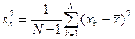 Следующая группа оценок предназначена для описания разброса выборочных значений около среднего арифметического (или, иными словами, для характеристики расположения значений выборки на числовой оси). Одна из таких оценок представлена выше – это размах выборки (3), определяемый как разность максимального и минимального значений в выборке. Однако эта оценка далеко не в полной мере отражает характер расположения точек выборки на прямой, поскольку из всей выборки она вычисляется только по двум крайним значениям. Гораздо чаще для этих же целей используется выборочная дисперсия, которая определяется следующей формулой: