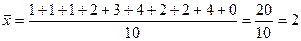 Медиана: не существует. Действительно, в выборке содержится четное число членов, и если бы все элементы выборки были разные, то нам надо было бы найти два «средних» элемента (пятый и шестой в упорядоченной по возрастанию или убыванию выборке) и вычислить для них среднее арифметическое. Однако, в рассматриваемом случае эти два «средних» элемента равны 2. Поэтому и среднее арифметическое для них также равно двум. Но проводя медиану через число 2, мы получаем, что «слева» от этого числа 2 мы имеем 4 точки выборки (0,1,1,1), а «справа» - три точки выборки (3,4,4). Поэтому поделить выборку пополам никак не удается в нашем случае.