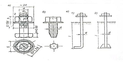 в – іргетас болттары: 1 - d£36мм, 2 - d>30мм