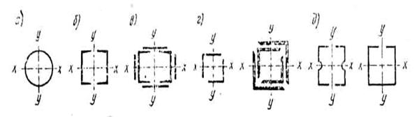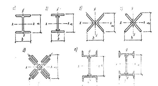 Тұтас қималары өте тиімді саналатын құбыр қималы (3-сурет), екі швеллер бұрыштардан құралған қималар (3-сурет б,в,г,д).