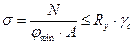 бұл жерде: N – ұстындағы есепті күш;