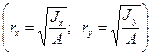 Инерция радиусының қима түріне байланысты келесі формулалармен белгіленеді.