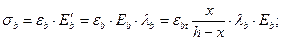 үшін; г) деформация эпюрасы жэне есептік қима; Деформация эпюра бойынша сығылған аймақтағы бетонның шеткі талшықтағы деформациясы келесі формула бойынша анықталады.