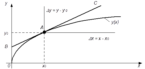 Геометрический смысл такой линеаризации заключается в замене кривой y(x) касательной ВС, проведенной к кривой в точке А (рис. 2.8).