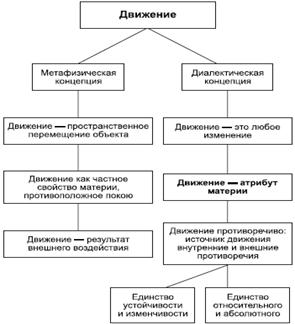 Понимание движения как изменения вообще предостерегает от сведения многообразия видов движения к какому-нибудь одному, как это было в метафизическом, механическом материализме. Утверждение, что движение – атрибут материи, не означает, что существует какое-то движение «в чистом виде»; движение как атрибут материи – то универсальное, что присуще всем конкретным видам движения.