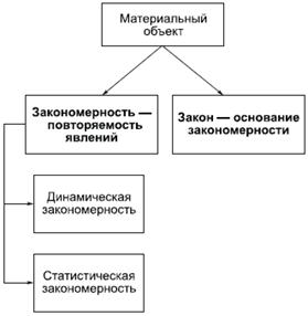 Закон есть объективная, существенная, необходимая, повторяющаяся связь (отношение), определяющая закономерность (повторяемость, регулярность) в сфере явлений. Под существенным здесь понимается такое отношение, которое внутренне детерминирует повторяющееся в сфере явлений. Необходимость закона заключается в том, что при наличии определенных условий он определяет порядок, структуру, связь явлений, постоянство процессов, регулярность их протекания, их повторяемость в относительно тождественных условиях.