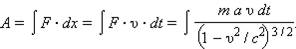 Если скорость классической частицы беспредельно растет под действием постоянной силы, то скорость релятивистской частицы не может превысить скорость света c в пустоте. В релятивистской механике, так же, как и в механике Ньютона, выполняется закон сохранения энергии. Кинетическая энергия тела Ek определяется через работу внешней силы, необходимую для сообщения телу заданной скорости. Чтобы разогнать частицу массы m из состояния покоя до скорости υ0 под действием постоянной силы F, эта сила должна совершить работу
