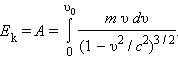 Вычисление этого интеграла приводит к следующему выражению для кинетической энергии (индекс «ноль» при скорости υ опущен):