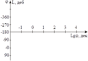 Для упрощения графического представления частотных характеристик, а также для облегчения анализа процессов в частотных областях используются логарифмические частотные характеристики: логарифмическая амплитудная частотная характеристика (л.а.ч.х.) и логарифмическая фазовая частотная характеристика (л.ф.ч.х.). При построении логарифмических характеристик на шкале частот вместо w откладывается lgw и единицей измерения является декада. Декадой называется интервал частот, соответствующий изменению частота в 10 раз. При построений л.а.ч.х. на оси ординат единицей измерения является децибел, который представляет собой соотношение L=20 lg M(w). Для л.ф.ч.х. на оси частот используется логарифмический масштаб, а для углов - натуральный масштаб. На практике логарифмические частотные характеристики строятся на совмещённой системе координат, которые представлены на рис. 3.1.