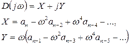 Критерий Михайлова предполагает построение годографа на комплексной плоскости. Для построения годографа из уравнения (4.1) путем подстановки S=jw получают аналитическое выражение вектора D(jw):