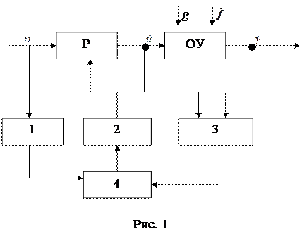Пример структуры системы адаптивного управления показан на рис. 16, где 1 - устройство контроля внешнего воздействия, 2 - исполнительное устройство, 3 - устройство контроля состояния процесса, 4 - логический элемент. Логическое устройство 4 контролирует условия функционирования объекта управления и его фактические характеристики и изменяет настройки регулятора Р таким образом, чтобы обеспечить оптимальное функционирование объекта.