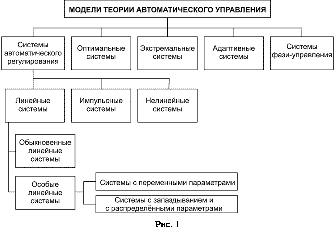 Методы теории автоматического управления. При решении задач анализа и синтеза системы автоматического управления методами теории автоматического управления приходится учитывать те или иные особенности исследуемой автоматической системы. Метод исследования необходимо выбирать в зависимости от целей исследования и особенностей исследуемой системы. Теория автоматического управления рассматривает различные модели систем автоматического управления. Каждая модель ориентирована на те или иные особенности реальных автоматических систем. С точки зрения применимости методов теории автоматического управления и учитываемых особенностей системы классификацию систем автоматического управления можно представить в виде диаграммы, показанной на рис. 22.