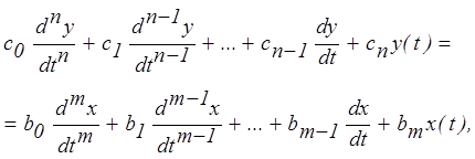 где у(t) – выходная (управляемая) величина, х(t) – входное воздействие, ci, bj – постоянные коэффициенты уравнения, n > m.