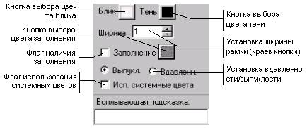 Если установить флаг Системные цвета, то вместо заданных цветов блика, тени и заполнения используются цвета объёмных элементов из настроек WINDOWS.