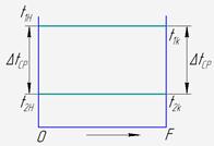 а)-прямоточное движение теплоносителей без изменения агрегатного состояния | б) – противоточное движение теплоносителей без изменения агрегатного состояния | ||