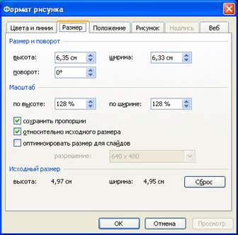 Рисунок 28 Установка размера рисунка во вкладке "Размер"