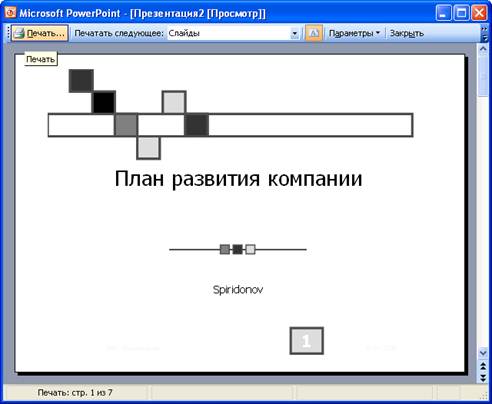 Рисунок 50 Печать презентации из режима предварительного просмотра