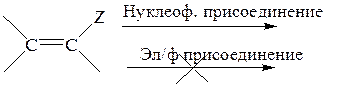 простые олефины вообще не реагируют по нуклеофильному механизму, а полигалогено- или полицианоолефины обычно не вступают в реакции, идущие по механизму электрофильного присоединения: