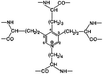 Структура их довольно необычна: четыре остатка лизина, соединяясь боковыми радикалами, образуют замещенное пиридиновое кольцо. Считают, что при образовании десмозина сначала три остатка лизина окисляются лизилоксидазой до ε-альдегидов (аллизин), а затем соединяются с четвертым остатком лизина.