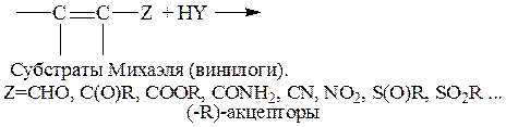 Нуклеофил Y образует связь с углеродом двойной связи, удаленным от активирующей группы Z: