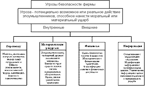 На схеме (рис. 3) приведены угрозы безопасности фирмы, которые необходимо учитывать руководству при разработке мер по защите предпринимательской тайны.