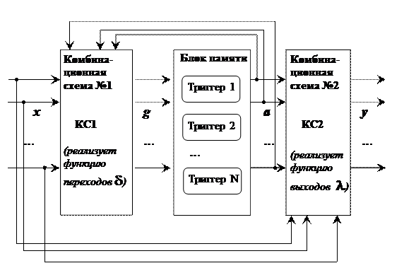 Внутреннюю структуру цифрового автомата можно изобразить, как показано на рисунке 8.1.