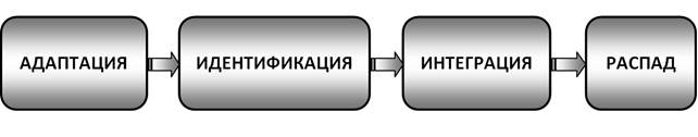 Каждая группа проходит следующие стадии развития: адаптация, идентификация, интеграция и распад (см. Рис.2.).