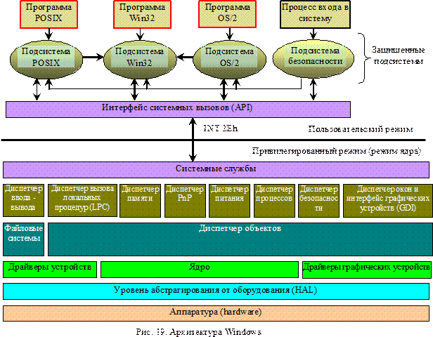 Всю операционную систему Windows можно разделить на следующие части (рис.19):