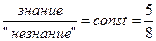 При достижении этого соотношения дальнейшее познание возможно лишь при "переводе" части "опредмеченного" незнания в знание, тогда увеличившийся суммарный объем знания дает шанс выделить следующий объем "незнания" и т.д.