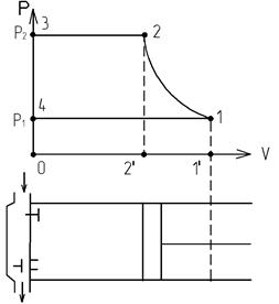 Рис.16. Индикаторная диаграмма теоретического поршневого компрессора: