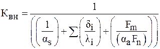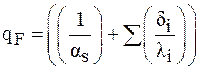 Определяется удельный тепловой поток от теплоносителя к стенке с учетом всех загрязнений: