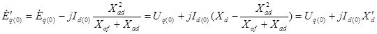 Для нахождения э.д.с. статора синхронной машины в начальный момент нарушения режима воспользуемся неизменностью потока