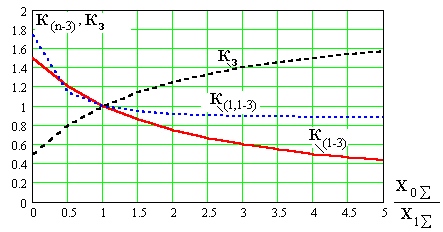 Имея в виду, что короткие замыкания разных видов предполагаются происходящими поочередно в одной и той же точке системы и при одних и тех же исходных условиях, на основании данных табл.4.3, 4.4 и 4.5 можно написать, что между величинами дополнительных реактивностей