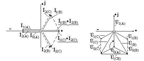 Соотношения (4.54),(4.55) справедливы для токов нулевой последовательности любой ветви схемы, так как они пропорциональны токам в месте к.з.