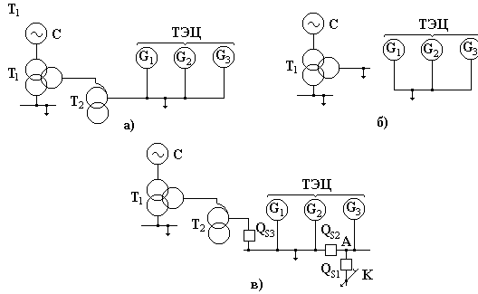 ) выполняют в нормальном режиме таким образом, чтобы максимальный уровень тока к.з. в конкретном узле нагрузки не превышал допустимый по параметрам установленного оборудования (рис.6.2,