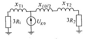 Схема замещения нулевой последовательности с учетом активных сопротивлений приведена на рисунке 16.2. Из нее следует, что активные сопротивления увеличивают суммарное сопротивление нулевой последовательности: