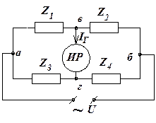 Чувствительность мостов переменного тока оценивается по отношению к напряжению, если роль ИР выполняет электронный вольтметр.