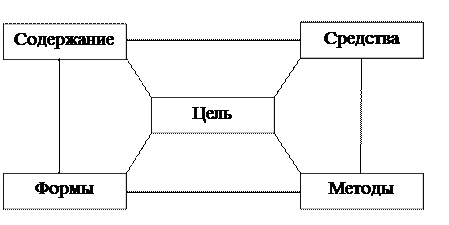Рис. 1 - Схематичное изображение системы процесса обучения биологии: цель обучения биологии, содержание биологического образования, методы обучения биологии, средства обучения биологии, формы организации обучения биологии