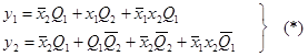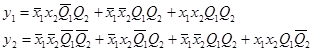 Функции у 1 и у 2 могут быть непосредственно получены из таблицы выходов, например, в виде: