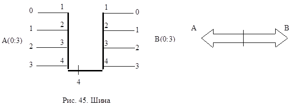 Шина - это совокупность цепей, предназначенных для передачи слова информации. Условное обозначение шины представлено на рис.45.