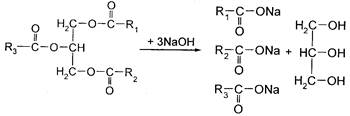 2. Щелочной гидролиз жиров: