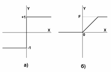 Активационная функция f имеет вид порога (рис. 2б), причем величина F должна быть достаточно большой, чтобы любые возможные значения аргумента не приводили к насыщению.