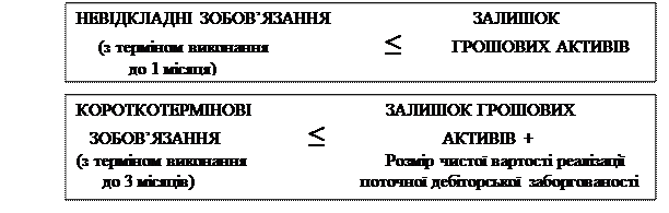 Контроль за сукупним рівнем залишку грошових активів при забезпеченні платоспроможності підприємства повинен виходити з таких критеріїв: